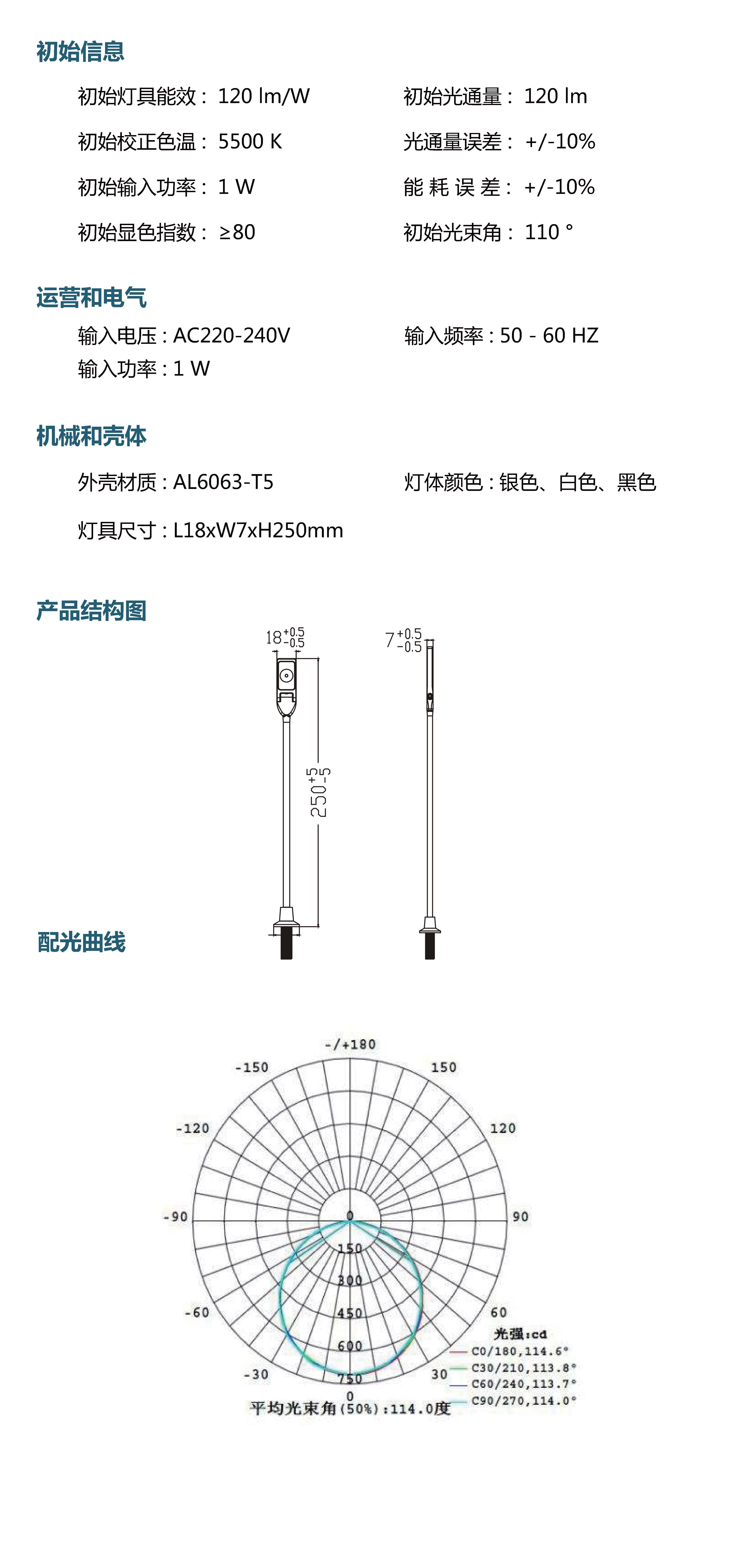 光 束 角: 110 °